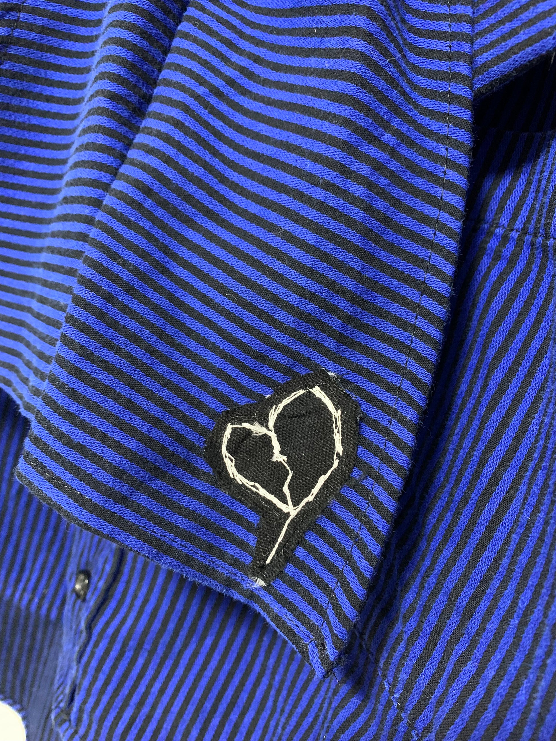 Remade button down shirt, cropped to a short length for a boxy crop style with a removable bow/tie.